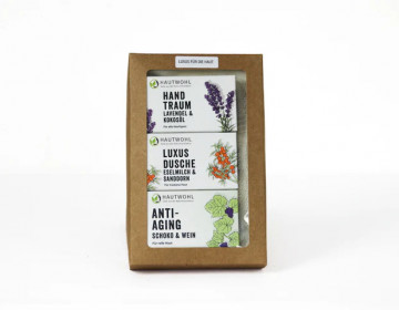Entdecken Sie die Pflegekraft unserer Hautwohl-Seifen im Luxusseifenset, das speziell für strahlende Haut zusammengestellt wurde. Bei jeder Anwendung spüren Sie die Reinheit, Frische und die Verbindung zur Natur.